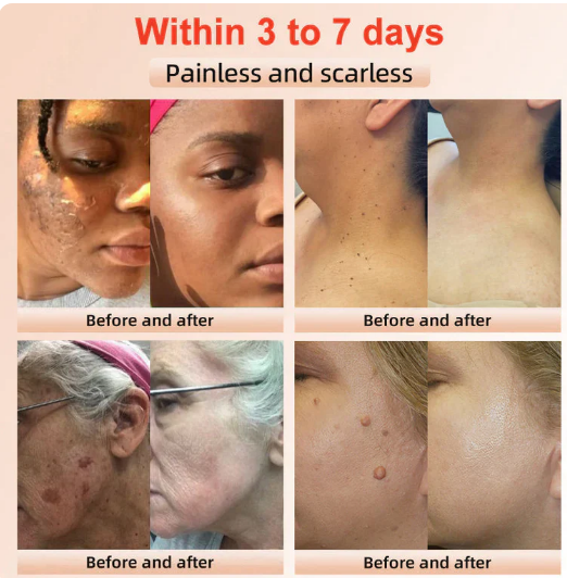 Discover the power of our solution for smooth, clear, and scar-free skin. In just 3 to 7 days, witness visible results as shown in these before and after images. Whether it’s dark spots, scars, or rough patches, our formula works gently to restore your skin’s natural beauty—painlessly and without leaving any scars. Get ready to reveal a more radiant, even-toned complexion with minimal effort. Don't wait—your skin transformation starts today